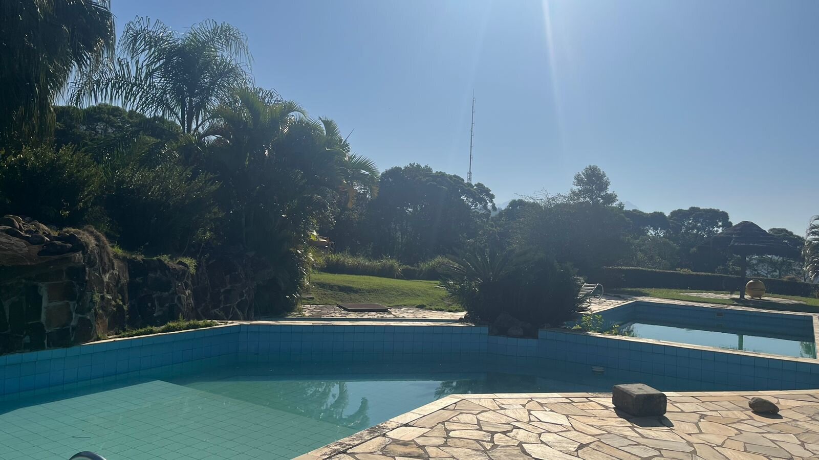 Piscinas adulto e infantil com vista para a baía